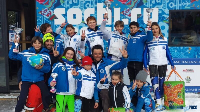 La squadra agonistica Vulcano Ski race porta a casa ben 12 atleti, che orgogliosamente correranno, con i nostri colori, nella fase Nazionale. Saranno presenti: Marta Ascanio, bronzo in fase regionale; Mavi Ulianich e Ludovica LaRusca per Cuccioli 2 femminile. Stefano Pennino oro in regionale; Francesco Costanzo, argento in regionale e Armando Minucci per Cuccioli2 maschile. Marcello Bolletti Censi, orgogliosamente primo classificato in fase regionale; Riccardo Savoia, Adolfo Costanzo e Luigi Del Guercio, che concorreranno per Baby 2 maschile. Ci sara’ la nostra, piccola, grande Lorenza La Rusca per Baby 1 femminile & Giulio Minervini per Baby1 maschile, 3zo in fase regionale.